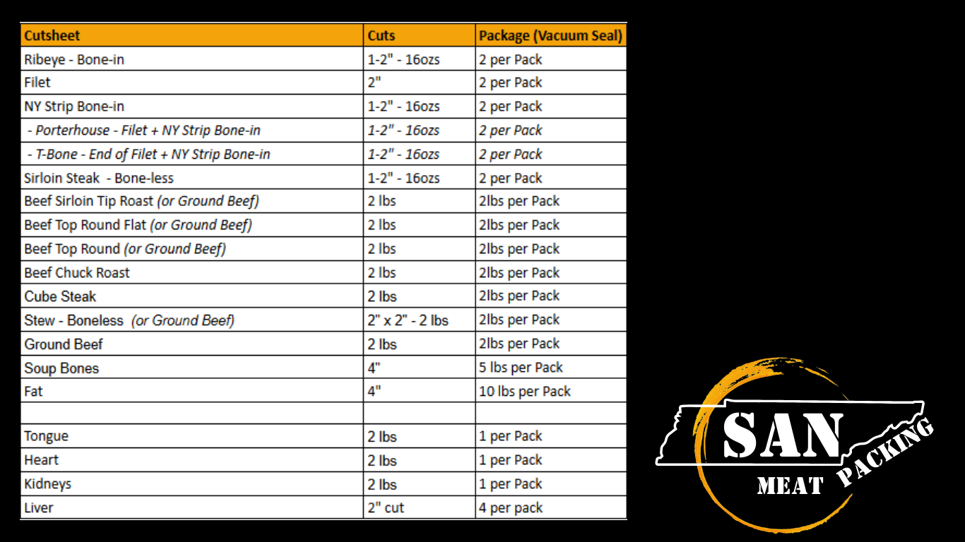 Half Beef weighing 250-300 lbs hanging priced at $1,293.75